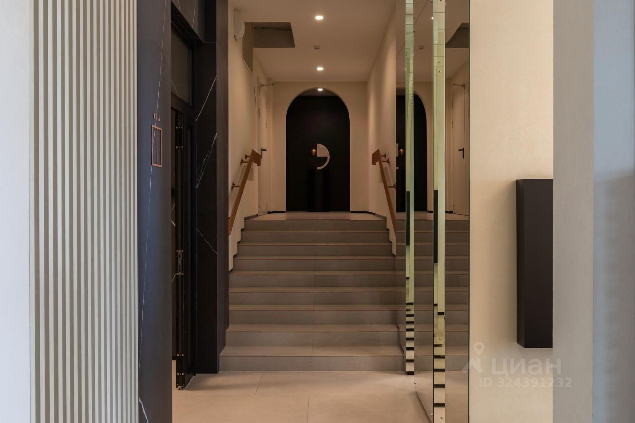 ОТКРЫТ ДЕМОЭАТАЖ Интерьеры всех этажей дома наполнены тонким дизайнерским вкусом. Натуральная фактура светлого керамогранита, изысканное сочетание сложных оттенков и мягкое освещение создают неповторимую атмосферу. Акцентом коридоров типового этажа стали высокие двери теплого лососевого цвета в матовом исполнении с арочными очертаниями и покрытием soft-touch, изготовленные по индивидуальному заказу. Благодаря двойному контуру уплотнения двери имеют высокий уровень шумопоглощения.