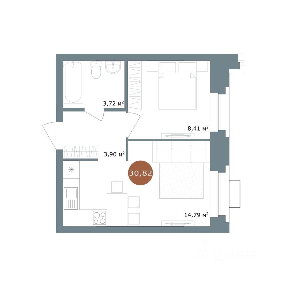 Продаётся 1-комнатная квартира в строящемся доме (Секция 1.2), срок сдачи: II-кв. 2027, общей площадью 31.03 кв.м., на 2 этаже. Новый жилой комплекс ''19/56 Кварталы Телецентра'' от Специализированного застройщика ''Телецентр'' расположен в Ленинском районе Новосибирска на ул. Костычева.