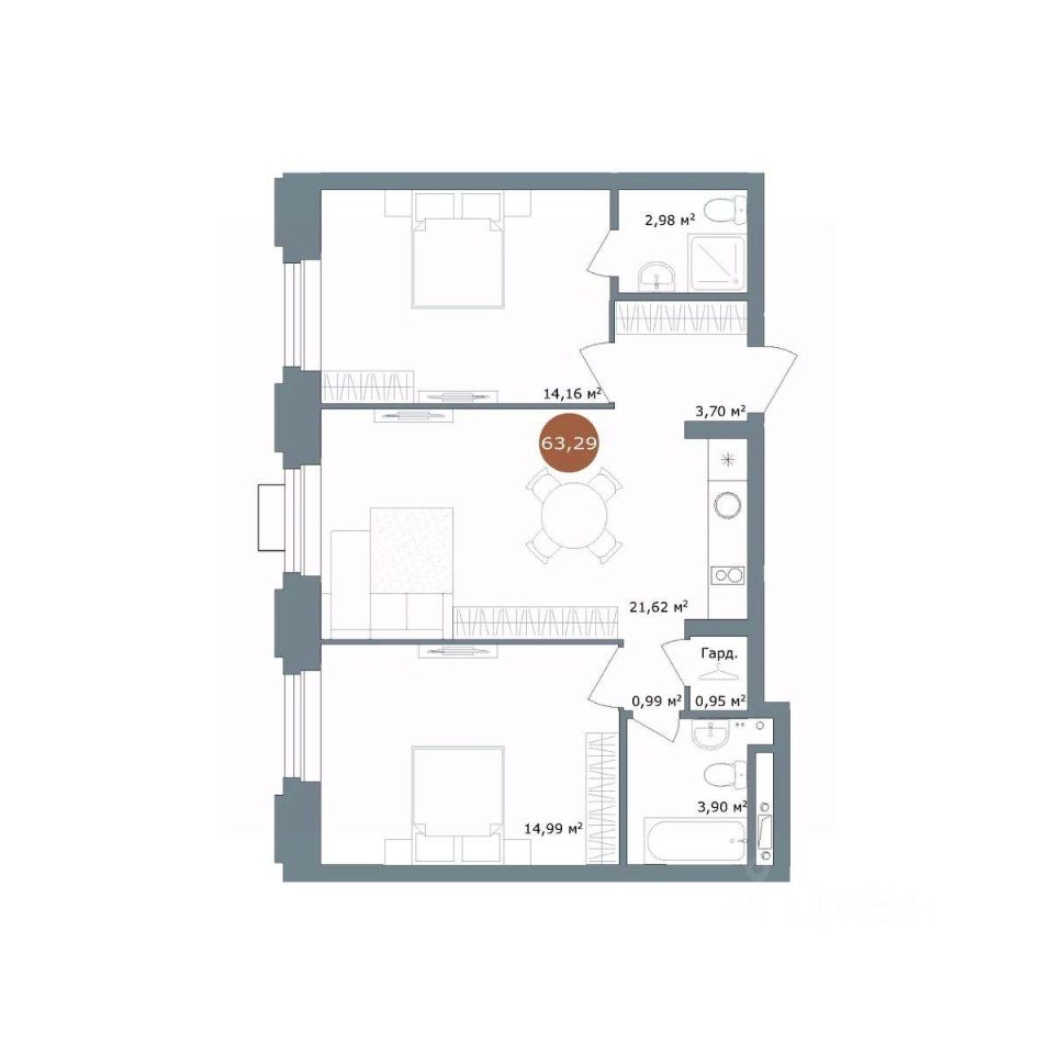 Продаётся 2-комнатная квартира в строящемся доме (Секция 1.2), срок сдачи: I-кв. 2027, общей площадью 63.29 кв.м., на 6 этаже. Новый жилой комплекс ''19/56 Кварталы Телецентра'' от Специализированного застройщика ''Телецентр'' расположен в Ленинском районе Новосибирска на ул. Костычева.