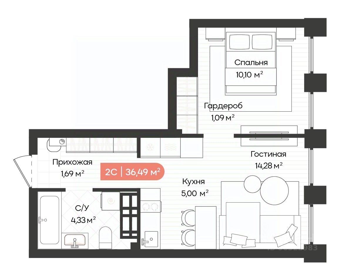 Общая площадь36,49 м2