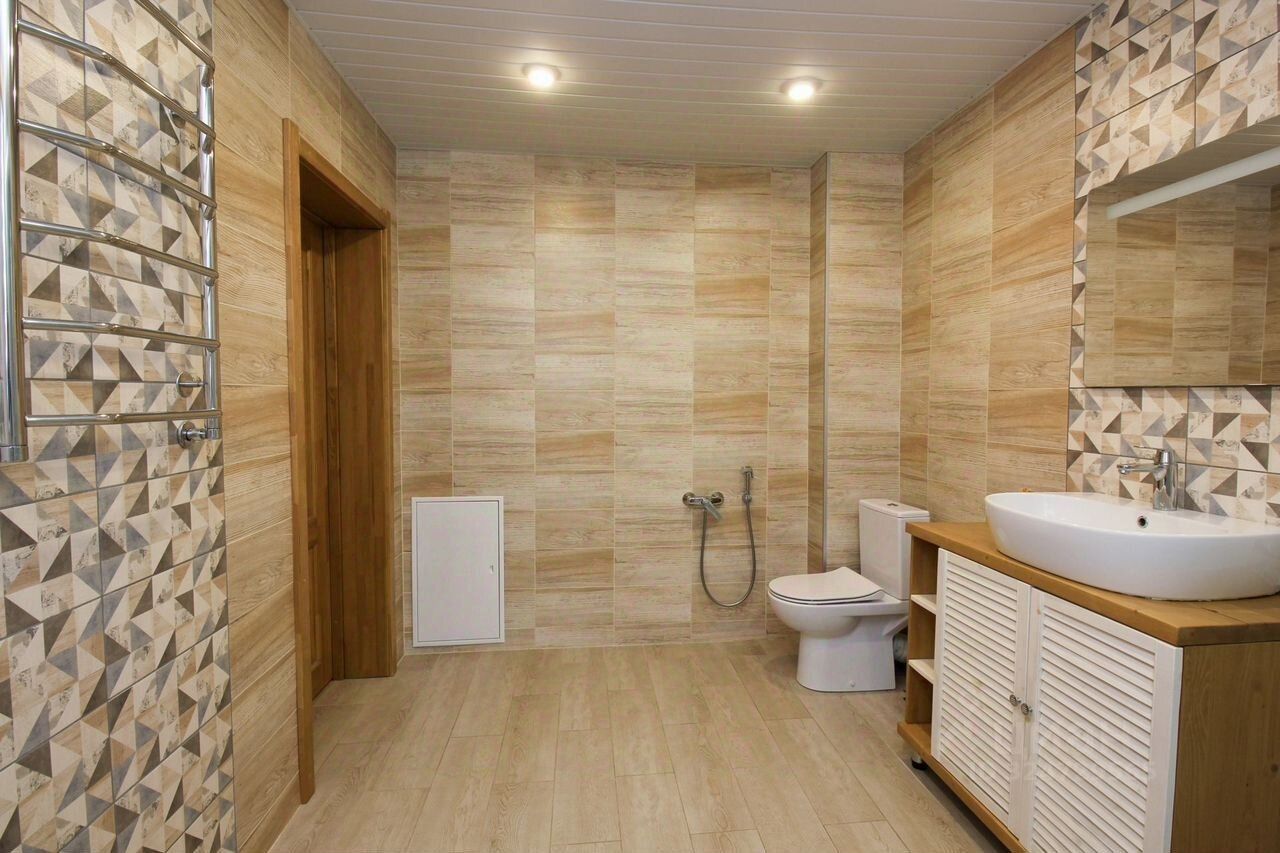 Фундамент выполнен на винтовых сваях с монолитной плитой и оборудован системой теплых полов для максимального комфорта в любое время года.