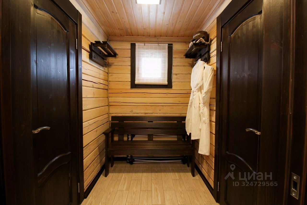 В состав комплекса входят просторный жилой дом площадью 180,7 м², гостевой дом-баня площадью 104,3 м² и гараж площадью 24,6 м² с проведенным отоплением.