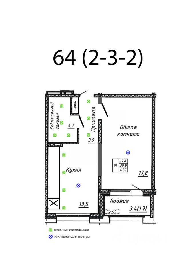 Общая площадь41,6 м2