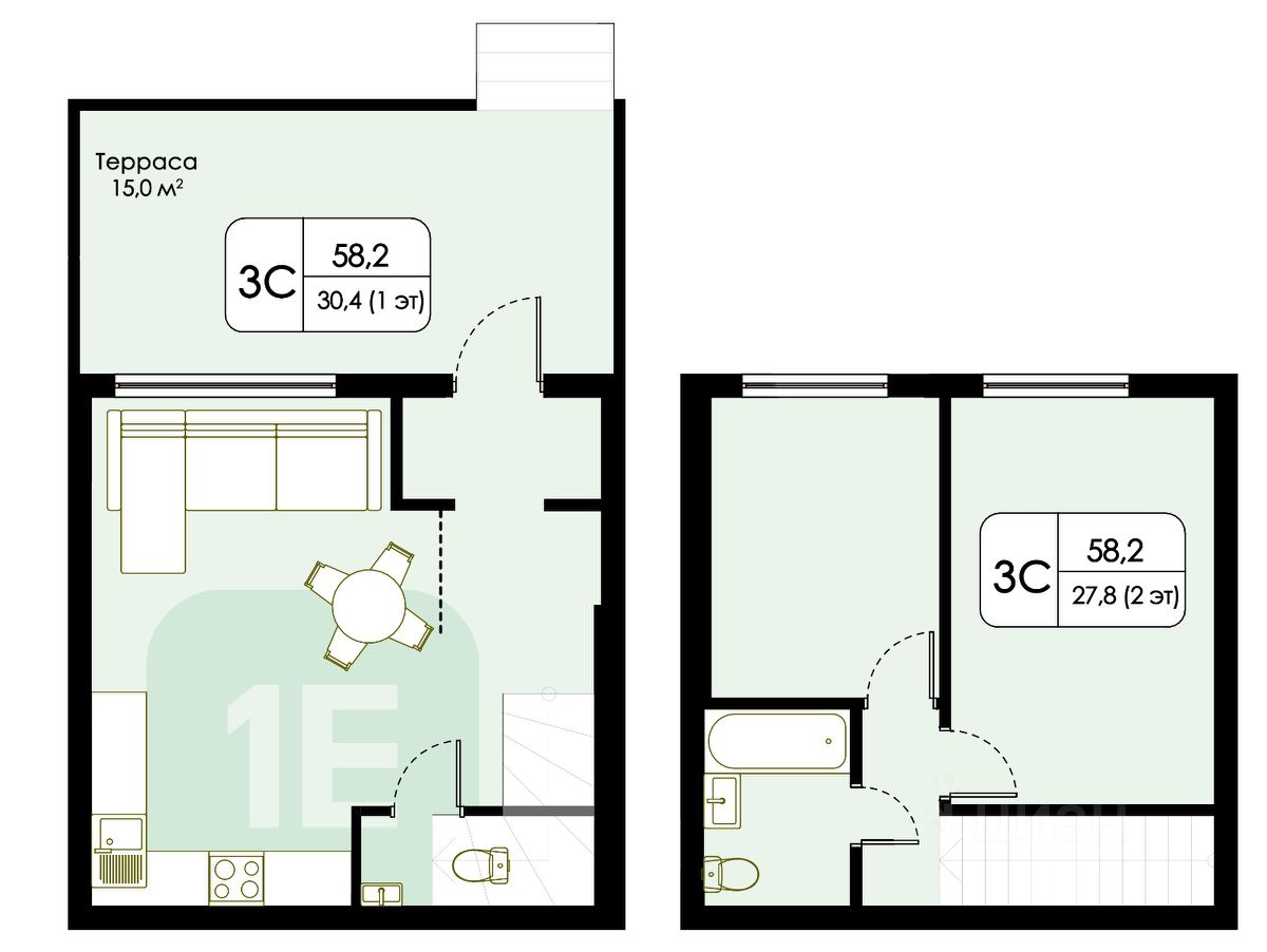Просторная терраса площадью более 15 кв.м., которая повышает комфорт проживания.