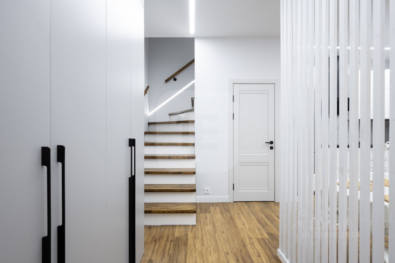 Функциональное зонирование пространства позволило выделить: - на первом этаже: систему хранения в прихожей зоне, просторную кухню-гостиную, сан. узел, - на втором этаже: спальню, детскую комнату с системой хранения, сан. узел (ванную комнату).
