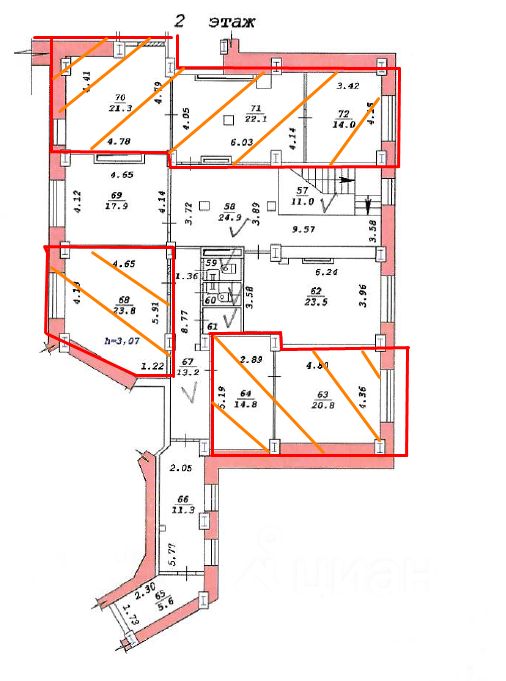 Есть возможность увеличить площадь аренды еще на 3 кабинета общей площадью 65 м2.