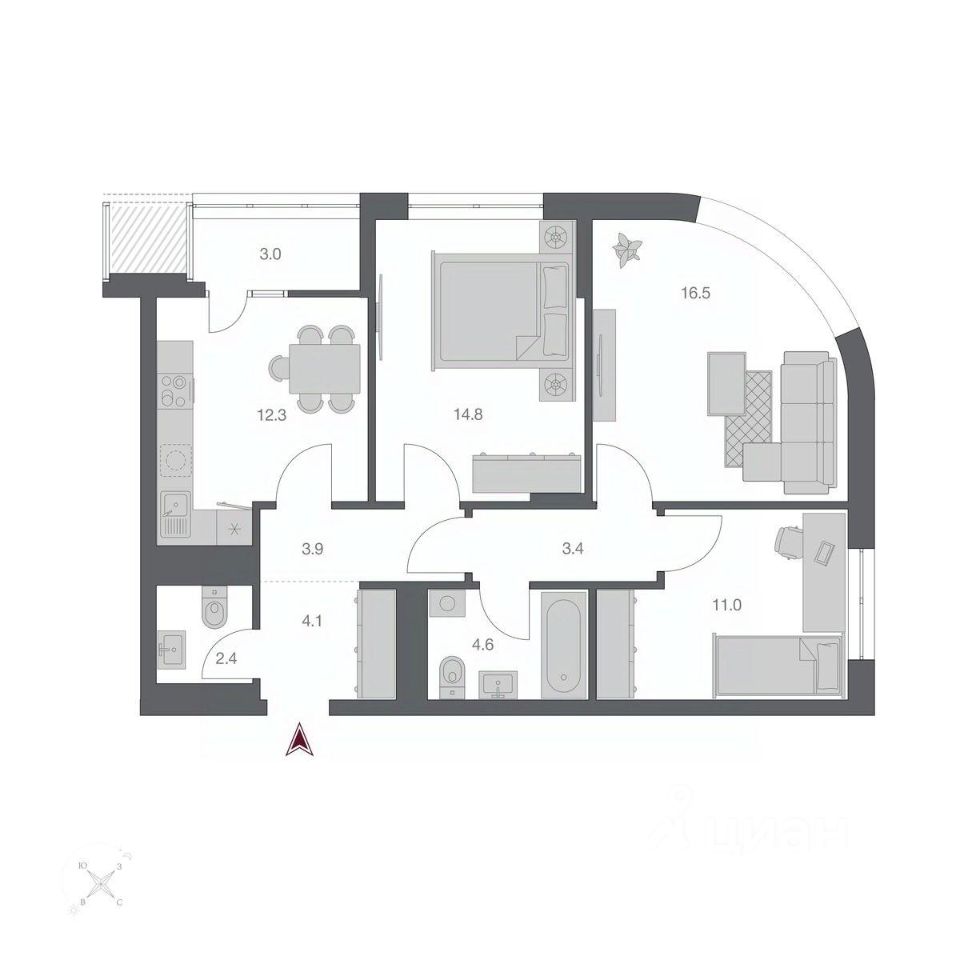 Общая площадь74,46 м2