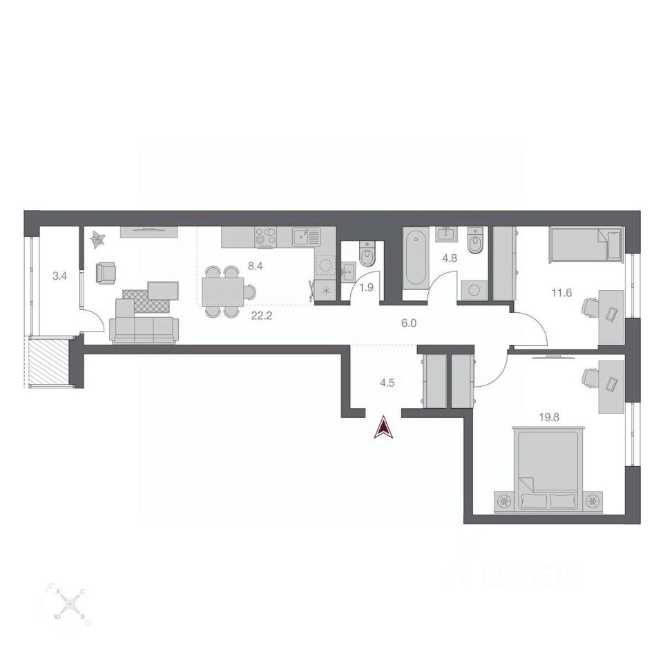 Общая площадь72,5 м2