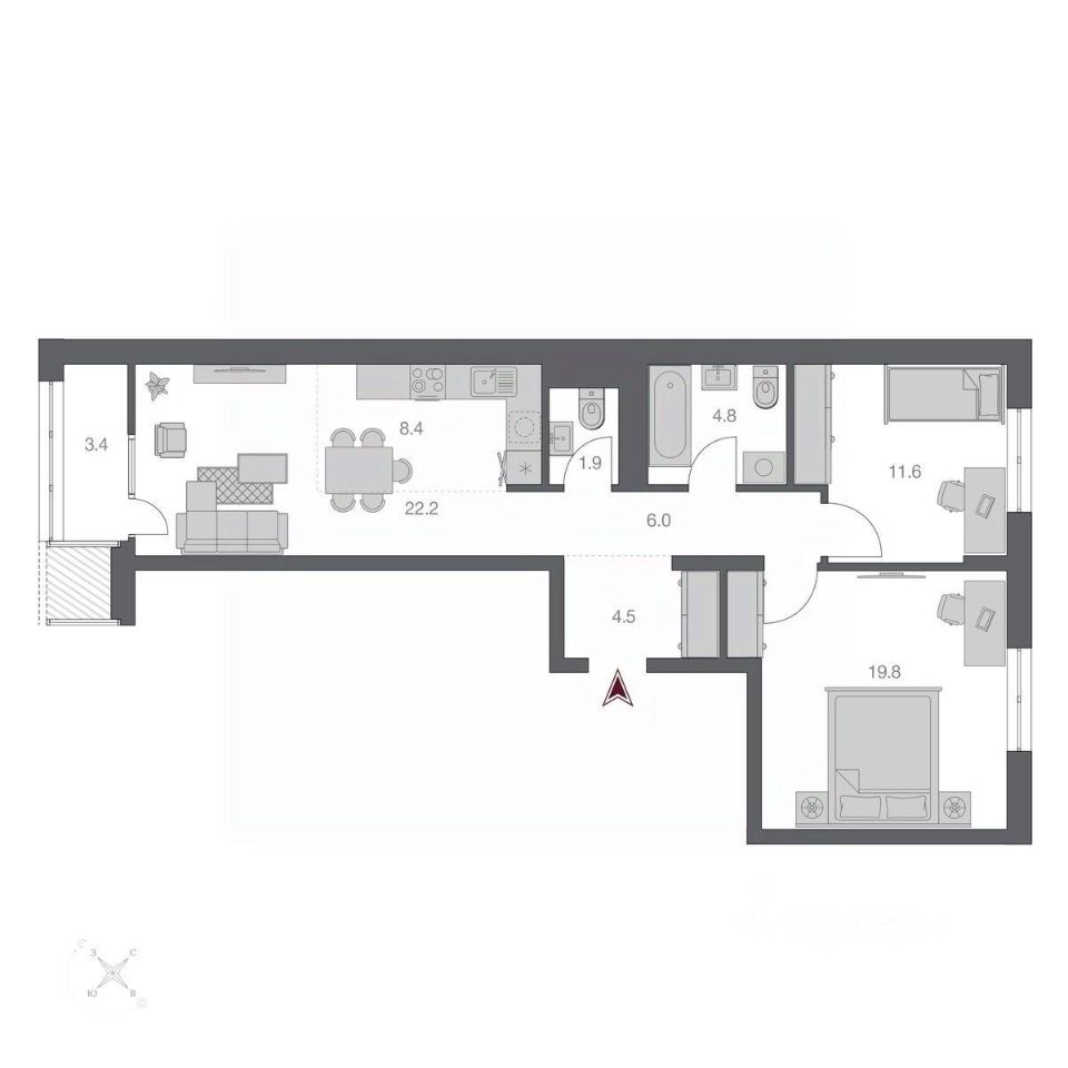 Общая площадь72,5 м2