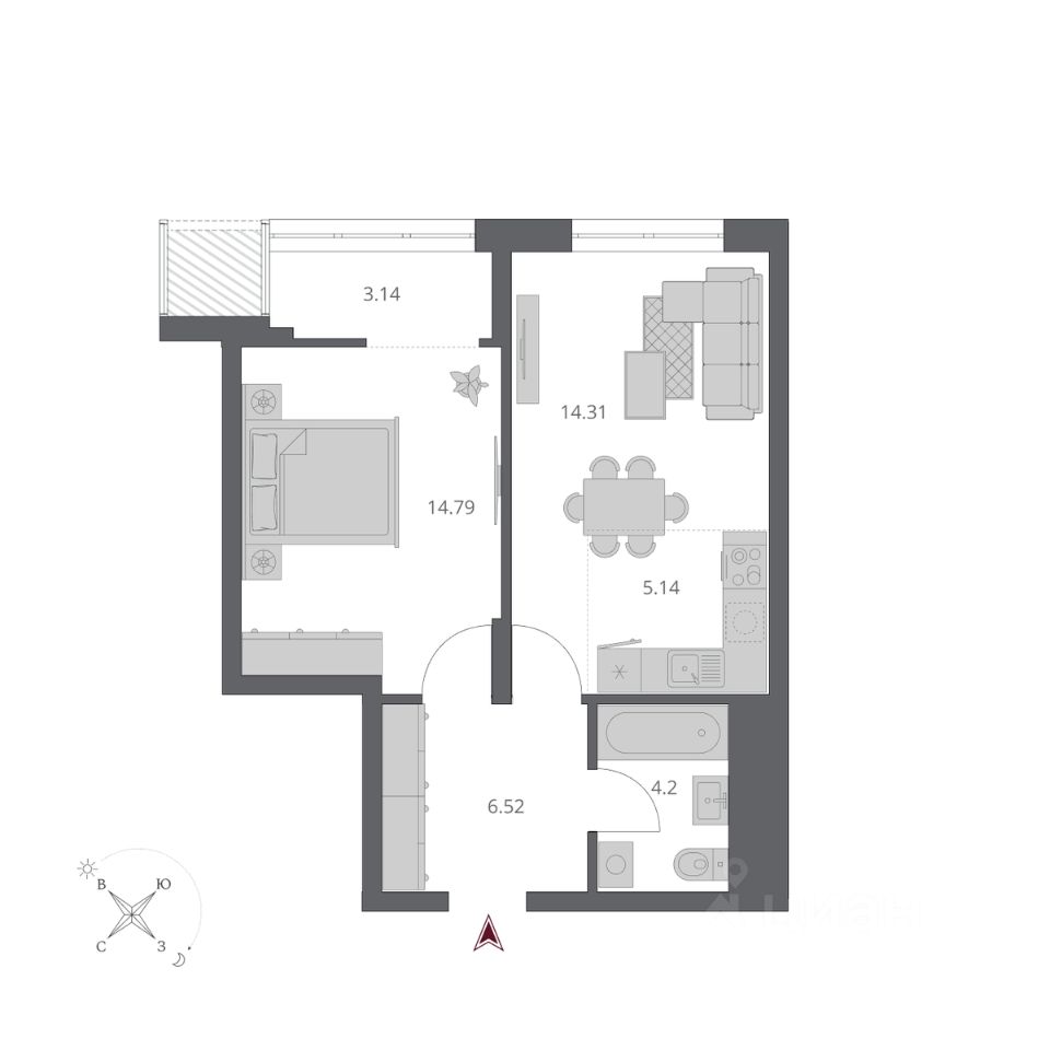 Общая площадь46,51 м2