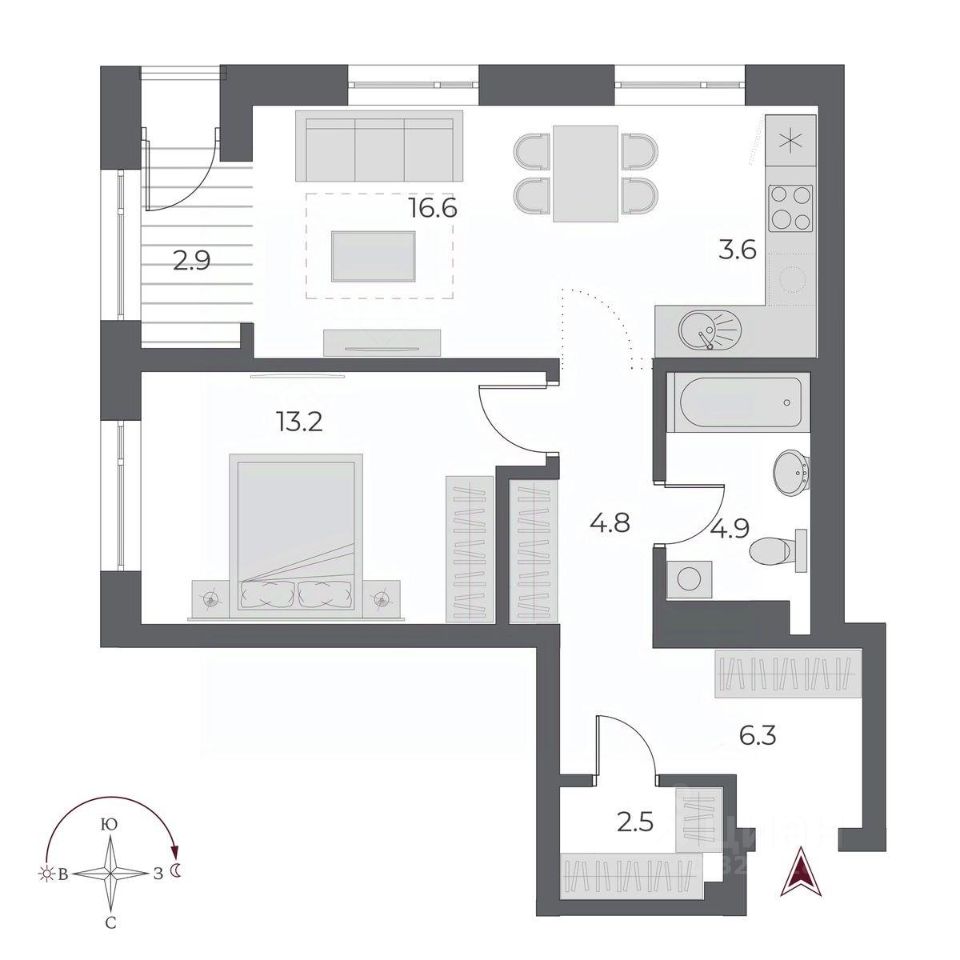 Общая площадь54,7 м2