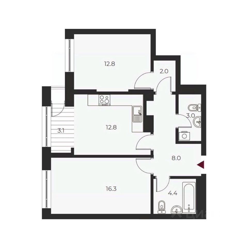 Кухня12,8 м2