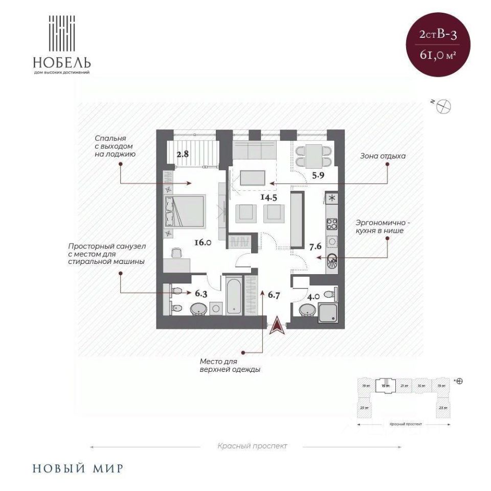 Дом ''Нобель'' в Новосибирске спроектирован компанией ''Новый мир'' совместно с международной командой архитекторов из Великобритании, Италии и Сербии. Уникальность проекта, в том, что при строительстве здания в центральной локации города удалось сохранить более 200 деревьев ценных хвойных пород на территории комплекса. При этом в продукте было сформировано более 50 вариантов функциональных планировочных решений. И все это в великолепной архитектурной форме в стиле ар-деко. Общая площадь территории 2 гектара!
