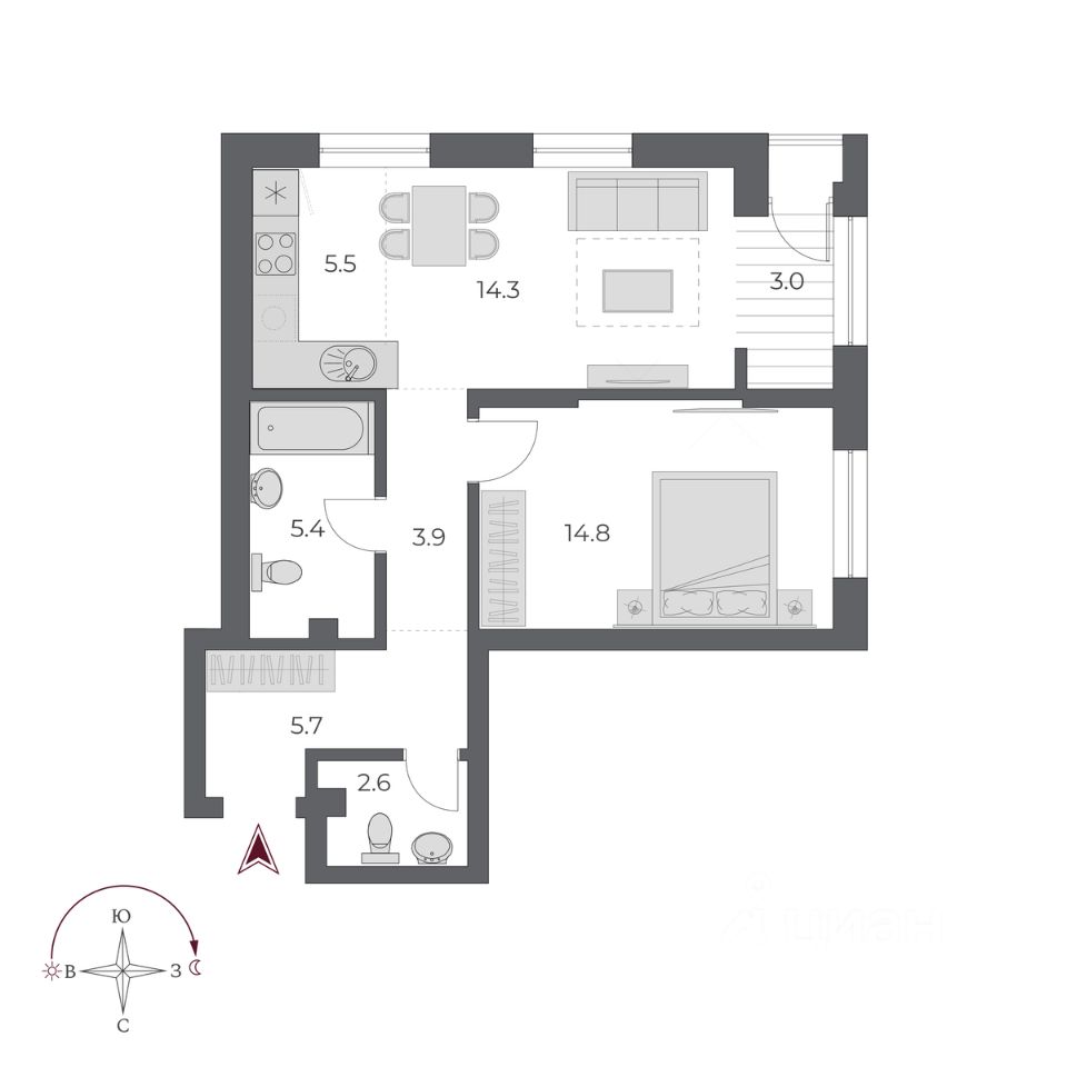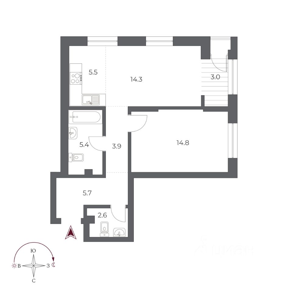 Общая площадь55,2 м2