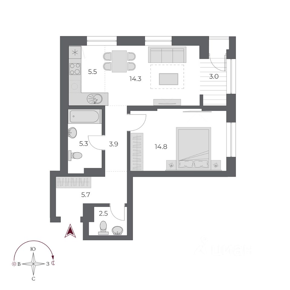 Общая площадь55 м2