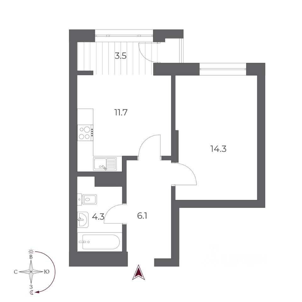 Жилая площадь14,3 м2