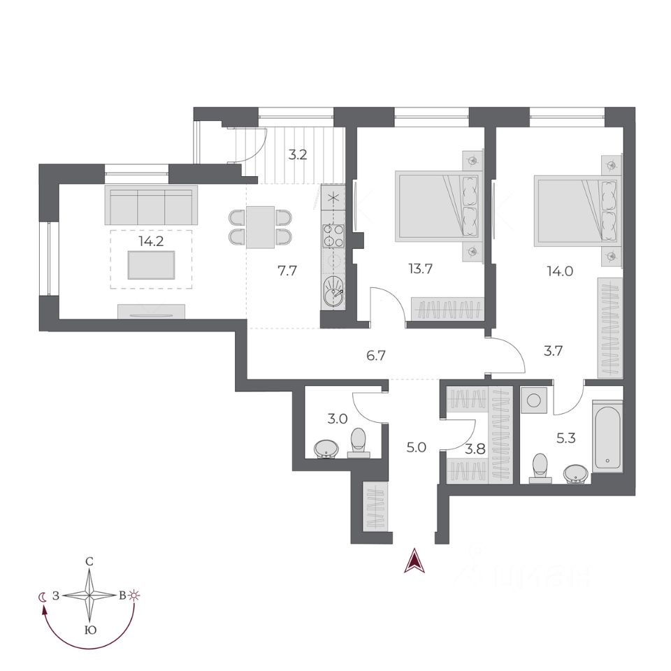 Общая площадь80,3 м2