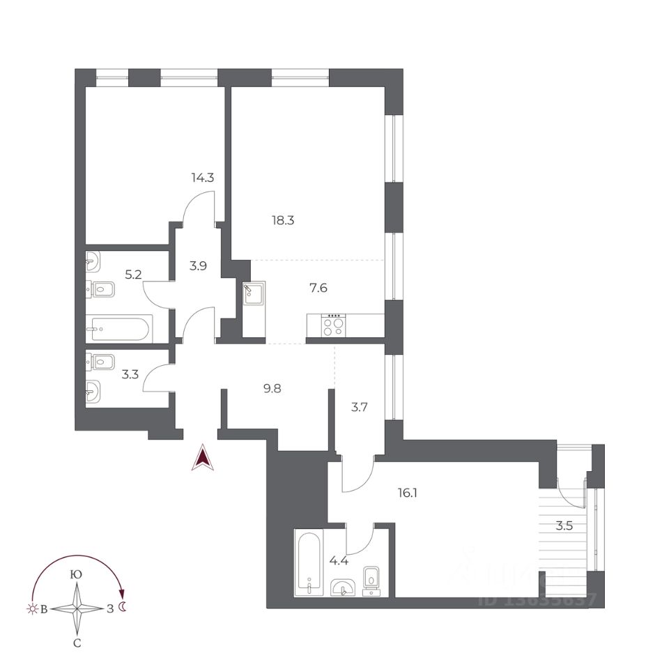 Общая площадь90,1 м2