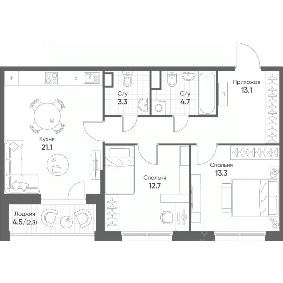 Продаётся 2-комнатная квартира в строящемся доме (Корпус 2), срок сдачи: III-кв. 2026, общей площадью 70.5 кв.м., на 9 этаже. ''Счастье в Кольцово'' - новый жилой комплекс Группы ''Эталон'' в р. п. Кольцово Новосибирской области. Комплекс будет возведен в Новосибирской городской агломерации, всего в 25 км от Новосибирска. Предполагаемая реализуемая площадь будущего комплекса составит 280 тыс. кв. м. Первая очередь строительства включает в себя 8 корпусов переменной этажности от 7 до 16 этажей. Район Кольцово, в котором будет возведен жилой комплекс, обладает всей необходимой инфраструктурой и является одной из ведущих научно-производственных площадок региона.