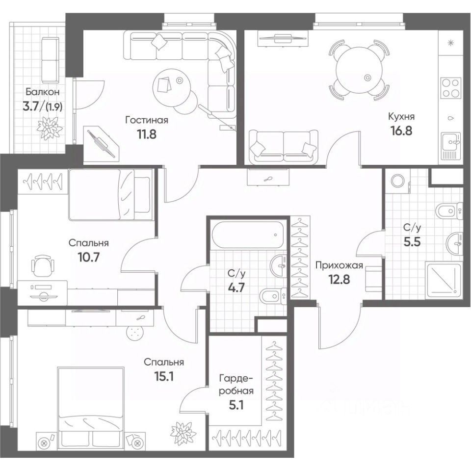 Продаётся 3-комнатная квартира в строящемся доме (Корпус 2), срок сдачи: III-кв. 2026, общей площадью 84.4 кв.м., на 4 этаже. ''Счастье в Кольцово'' - новый жилой комплекс Группы ''Эталон'' в р. п. Кольцово Новосибирской области. Комплекс будет возведен в Новосибирской городской агломерации, всего в 25 км от Новосибирска. Предполагаемая реализуемая площадь будущего комплекса составит 280 тыс. кв. м. Первая очередь строительства включает в себя 8 корпусов переменной этажности от 7 до 16 этажей. Район Кольцово, в котором будет возведен жилой комплекс, обладает всей необходимой инфраструктурой и является одной из ведущих научно-производственных площадок региона.