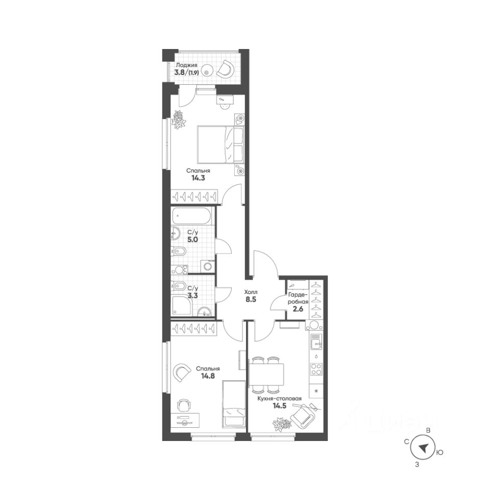 Продаётся 2-комнатная квартира в строящемся доме (Корпус 4-8), срок сдачи: III-кв. 2026, общей площадью 64.9 кв.м., на 6 этаже. ''Счастье в Кольцово'' - новый жилой комплекс Группы ''Эталон'' в р. п. Кольцово Новосибирской области. Комплекс будет возведен в Новосибирской городской агломерации, всего в 25 км от Новосибирска. Предполагаемая реализуемая площадь будущего комплекса составит 280 тыс. кв. м. Первая очередь строительства включает в себя 8 корпусов переменной этажности от 7 до 16 этажей. Район Кольцово, в котором будет возведен жилой комплекс, обладает всей необходимой инфраструктурой и является одной из ведущих научно-производственных площадок региона.