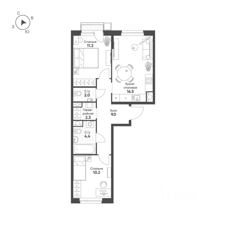 Продаётся 2-комнатная квартира в строящемся доме (Корпус 9-12), срок сдачи: IV-кв. 2028, общей площадью 55.7 кв.м., на 6 этаже. ''Счастье в Кольцово'' - новый жилой комплекс Группы ''Эталон'' в р. п. Кольцово Новосибирской области. Комплекс будет возведен в Новосибирской городской агломерации, всего в 25 км от Новосибирска. Предполагаемая реализуемая площадь будущего комплекса составит 280 тыс. кв. м. Первая очередь строительства включает в себя 8 корпусов переменной этажности от 7 до 16 этажей. Район Кольцово, в котором будет возведен жилой комплекс, обладает всей необходимой инфраструктурой и является одной из ведущих научно-производственных площадок региона. Здесь расположено более десятка исследовательских организаций и инновационных компаний, занимающихся разработкой и производством в сфере биотехнологий. Участок примыкает к жилым кварталам и лесному массиву. В 25 минутах езды находится Академгородок и бизнес-инкубатор Академпарка. Завершение всех очередей проекта запланировано на 4 квартал 2029 года.