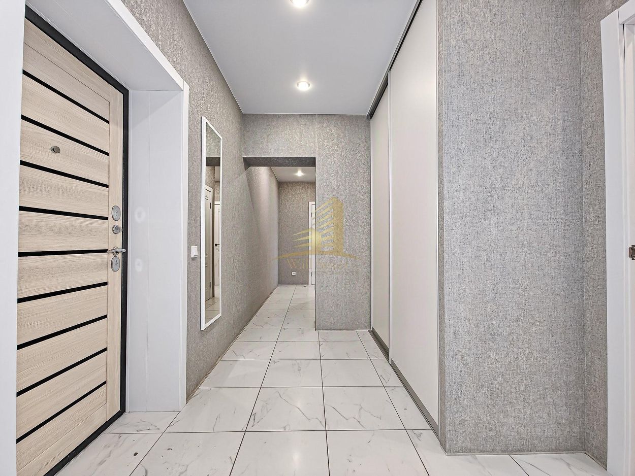 В квартире сделан хороший ремонт. На полу керамическая плитка. Встроенные шкафы для хранения одежды.