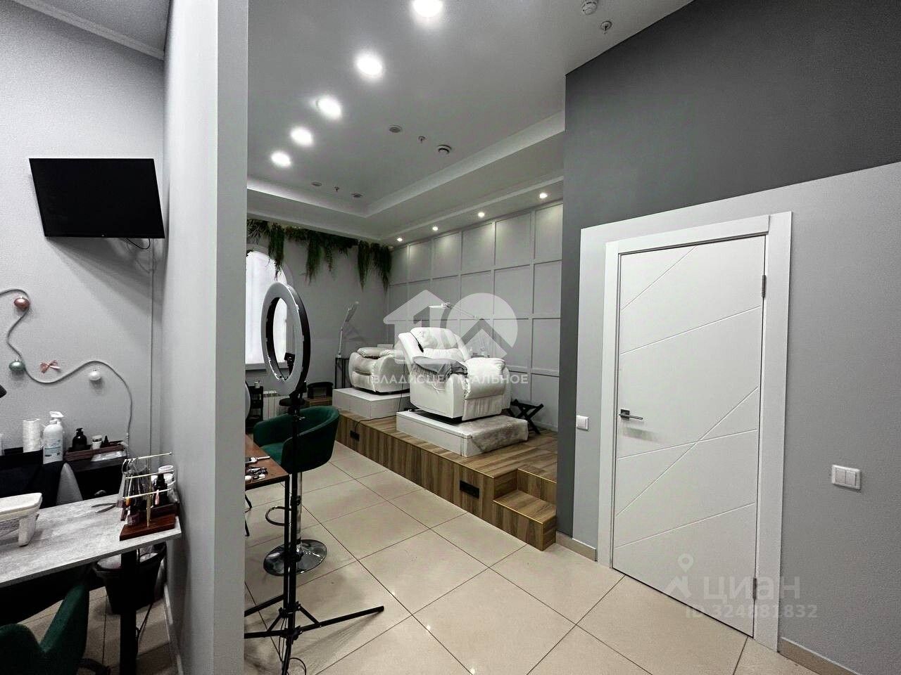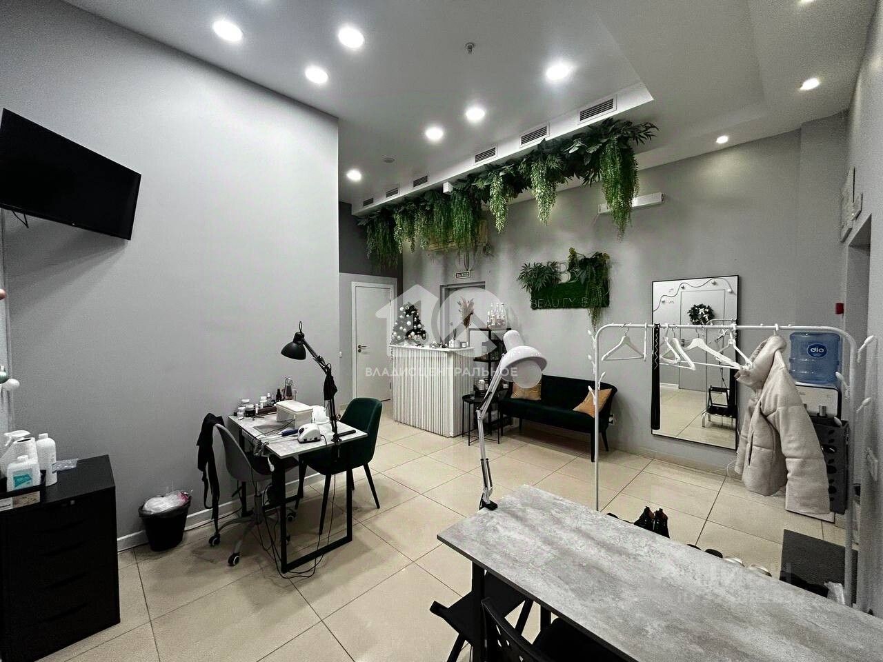 В помещении предусмотрена зона с выведенными мокрыми точками под услуги парикмахеров или педикюра (при необходимости можно легко демонтировать)