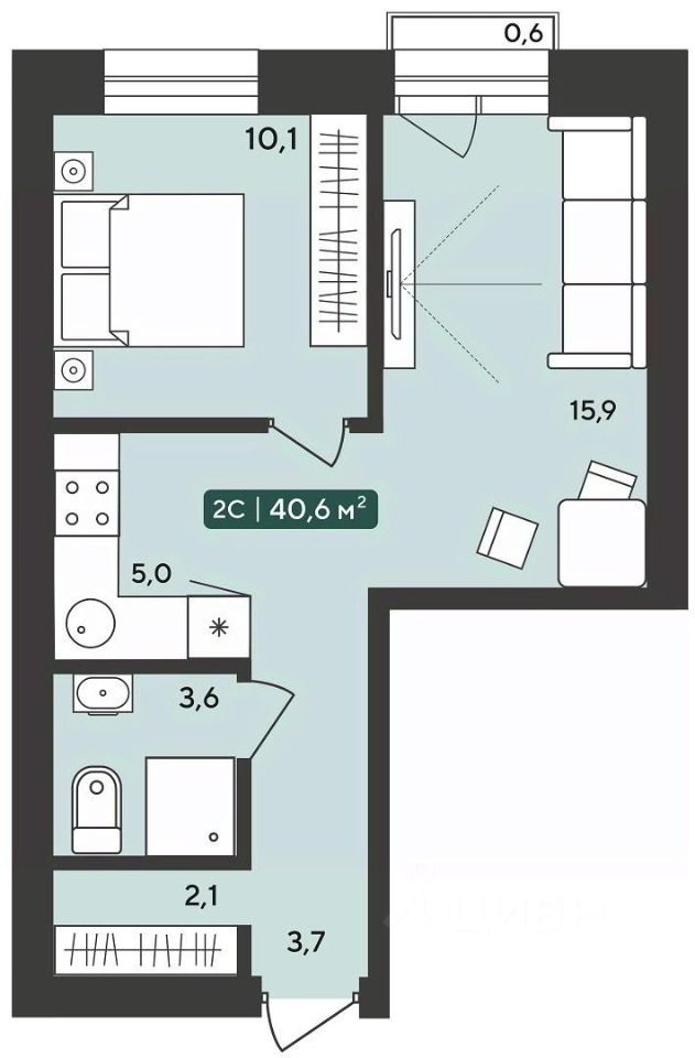 Общая площадь40,6 м2