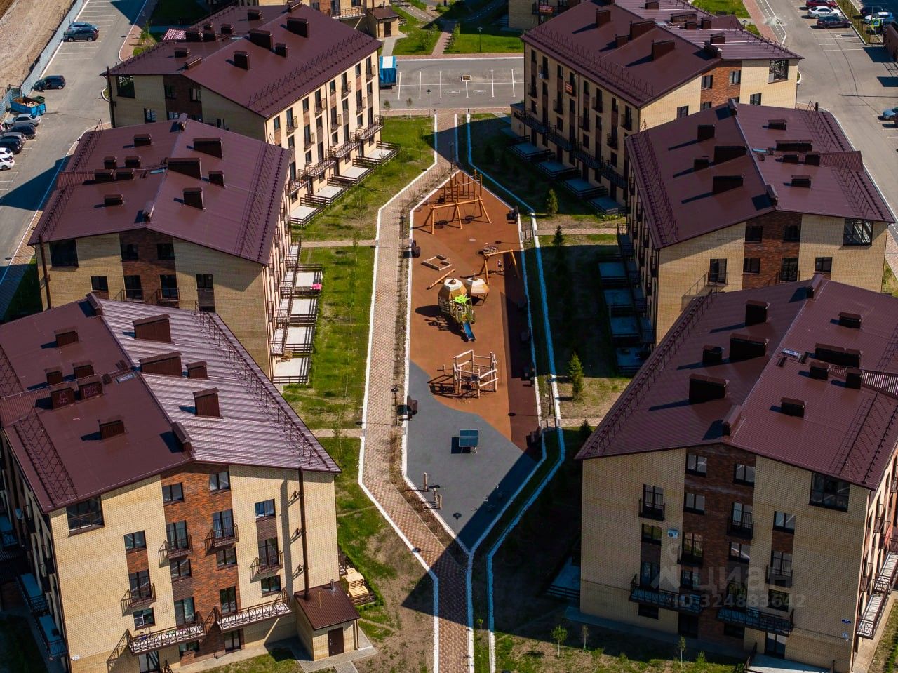 ''Альпийский квартал'' — большой комплекс малоэтажных домов в стиле ''шале'', спроектированный по образцу европеиских городков района Альп. Квартальная застройка домов классической кирпичной кладки. На каждые 6 домов предусмотрен отдельный двор. На этаже не более 8 квартир. Разнообразные планировки: от больших студии 30 м2 до семейных квартир с террасой или вторым ярусом. Здесь есть все для счастья: живописная природа с лесом, озером и цветущими летом лугами игровой городок из экологичных материалов: качели-гнезда, горки, веревочные препятствия и др. зоны воркаута и площадки для игр в баскетбол и футбол беговая дорожка по периметру квартала закрытая территория с охраной и видеонаблюдением ландшафтное озеленение двор ''без машин'' Всего 23 км до пл.