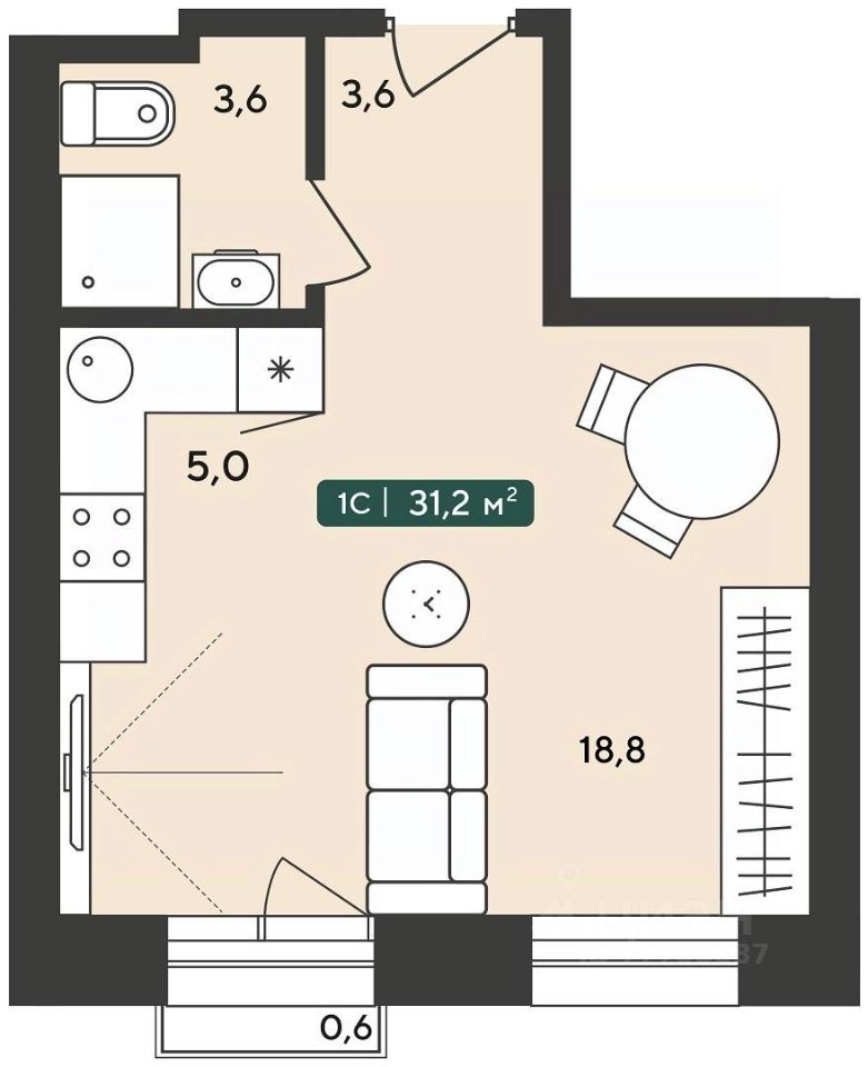 Общая площадь31,2 м2