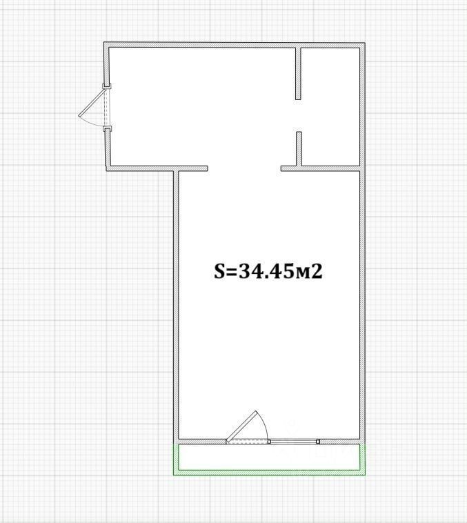 Общая площадь 34,45 кв.м, застекленная лоджия 4,15 кв.м.