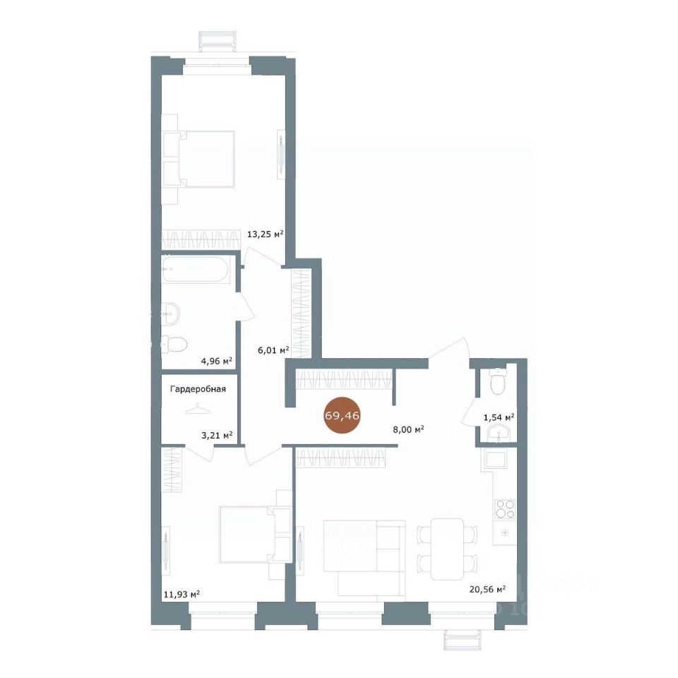 Общая площадь69,46 м2