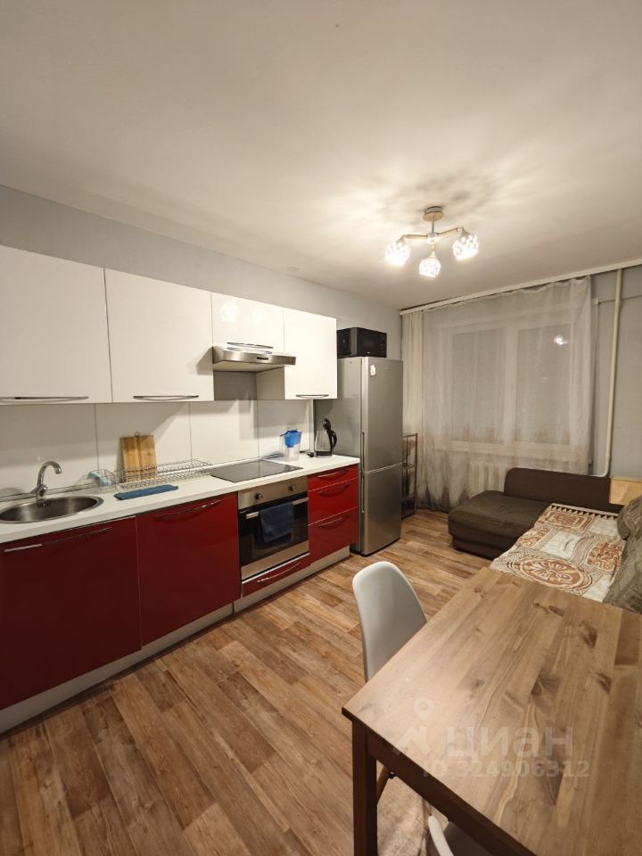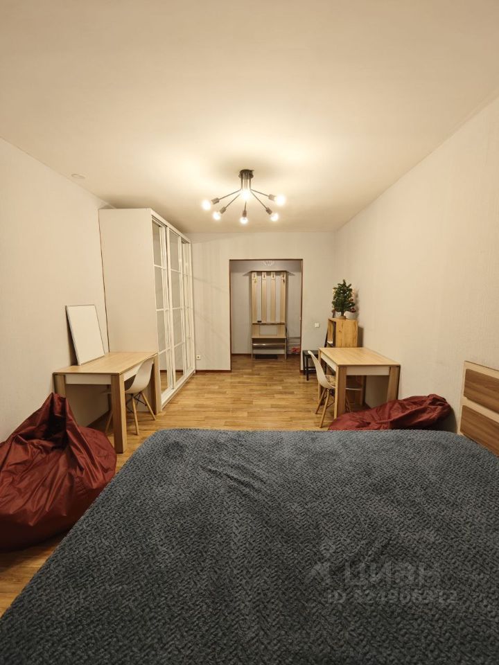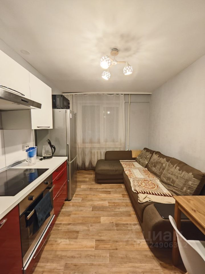 B квартире есть все необходимое для комфортного проживания. В комнате 17,7м2 - двуспальная кровать, столы со стульями, напольная полка для книг и декора, груши, шкаф для одежды. Кухня 11,9 м2 оборудована кухонным гарнитуром и встроенной техникой: духовой шкаф, варочная поверхность, а также холодильник, чайник, микроволновка и компактная посудомоечная машина, обеденный стол со стульями и большой угловой диван. Санузел совмещенный, установлена стиральная машина. Также к квартире есть напольный кондиционер. Вся техника и мебель в прекрасном состоянии. Квартира сдается впервые!