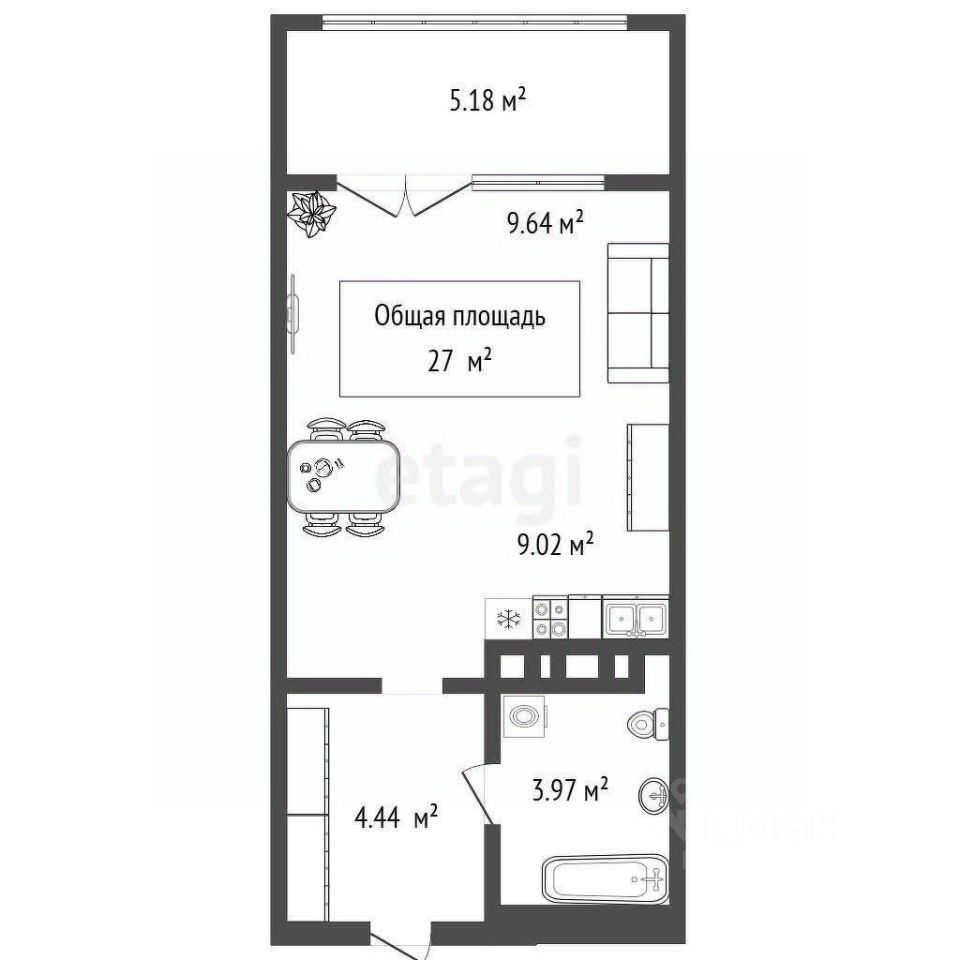Ремонт - на ваше усмотрение, любые мысли, любые идеи, самые сокровенные фантазии на 27 квадратных метрах) Балкон 5 квадратных метров, которые не входят в общую площадь квартиры! В квартире один собственник, есть ипотека.