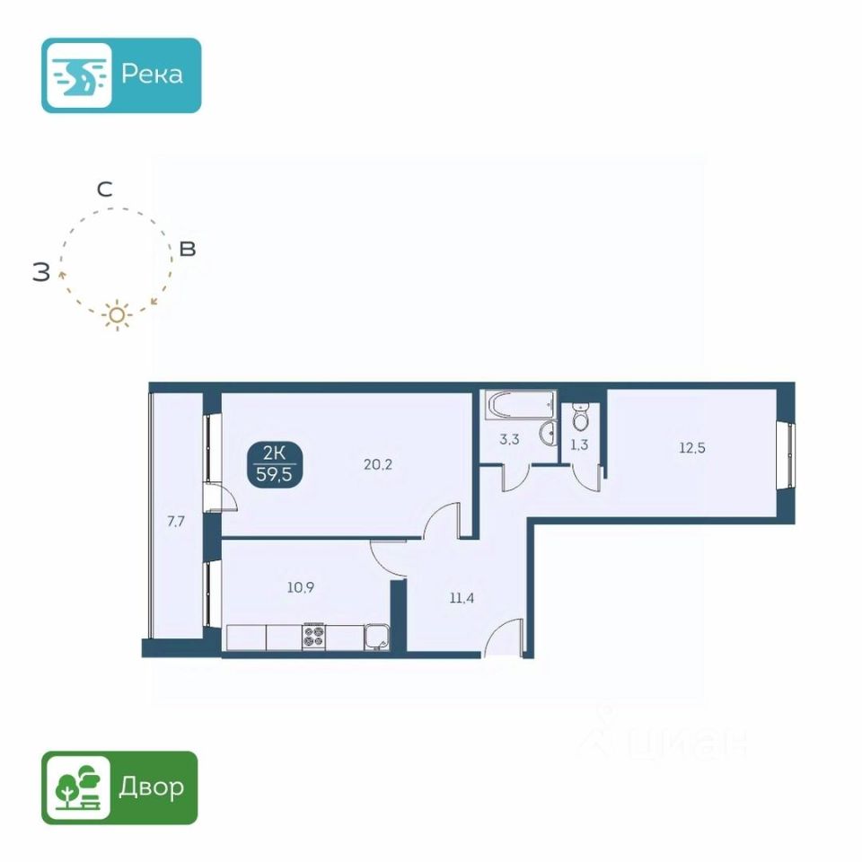 КВАРТИРА - Высота потолков 2,6 м. - Есть варианты квартир с ремонтом и в предчистовой отделке - Большие лоджии 7 м. - Вид из окон на детские площадки или на набережную