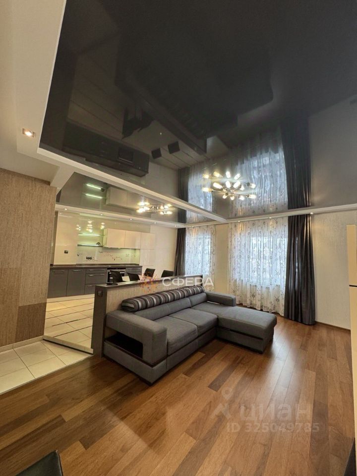 Функциональная меблировка: Интерьер продуман до мелочей и включает в себя всё необходимое для комфортного проживания: стильный диван и оригинальная мебель под аппаратуру в просторной гостиной, современный эргономичный кухонный гарнитур, вместительные шкафы в прихожей и гардеробную зону в жилой комнате.