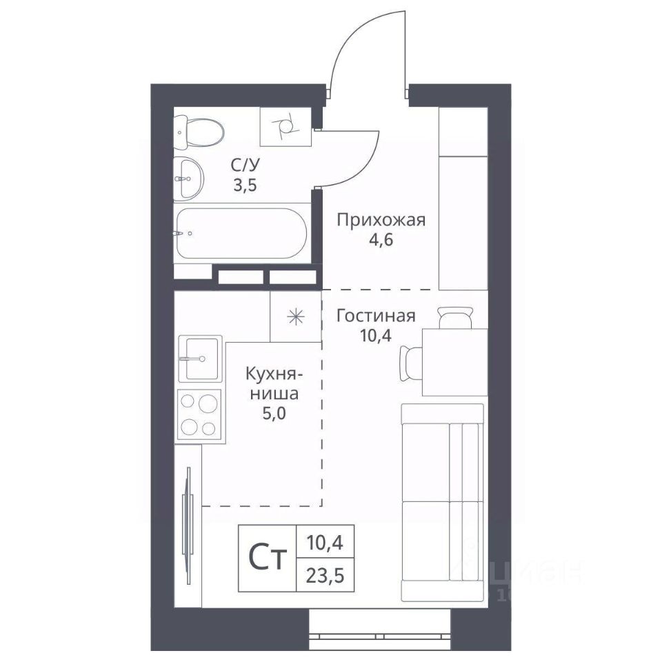 Общая площадь23,5 м2