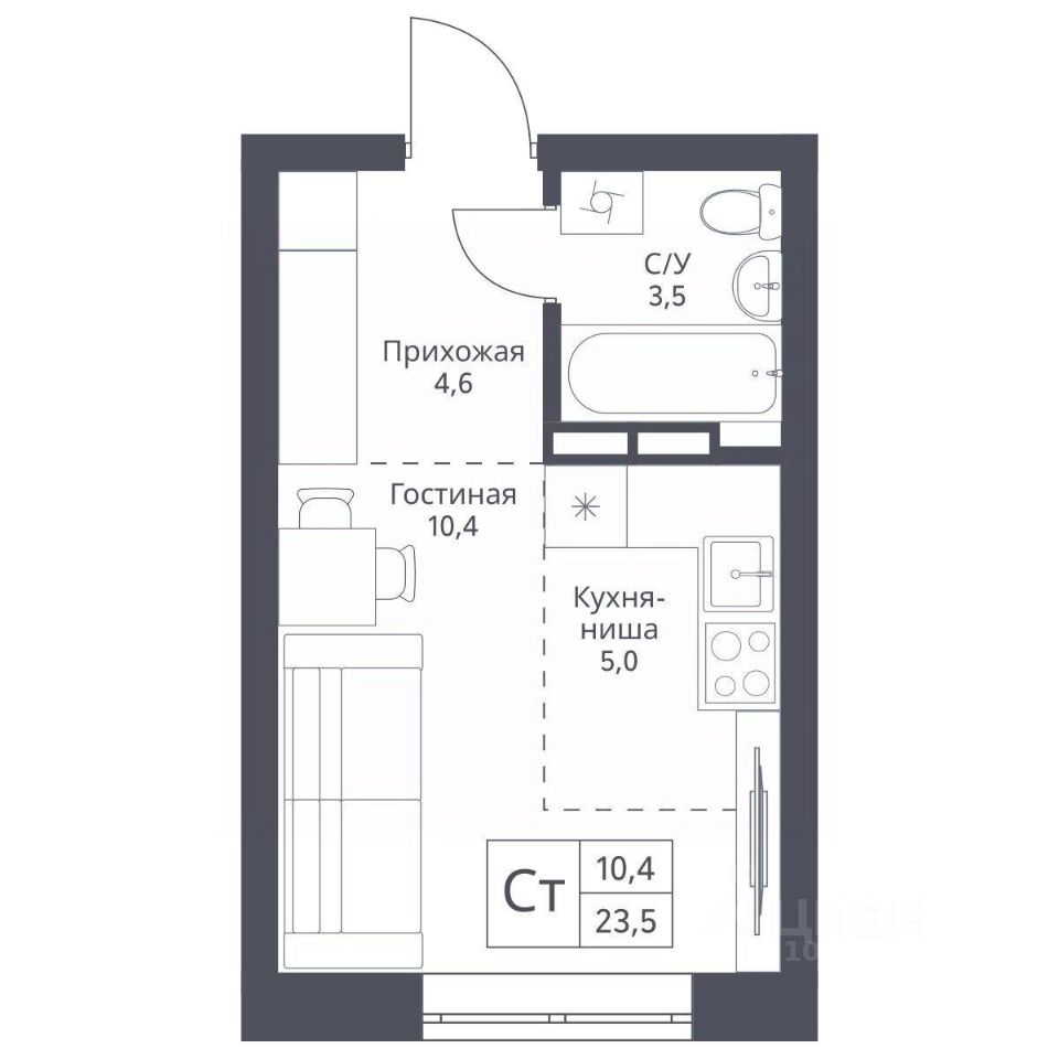 Жилая площадь10,4 м2
