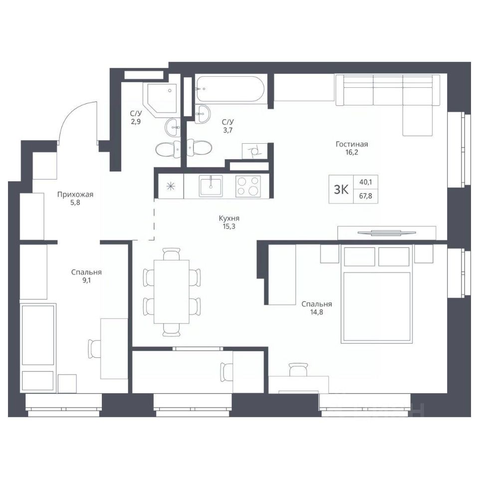 Общая площадь67,8 м2
