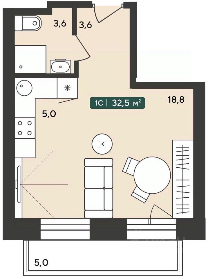 Общая площадь32,5 м2