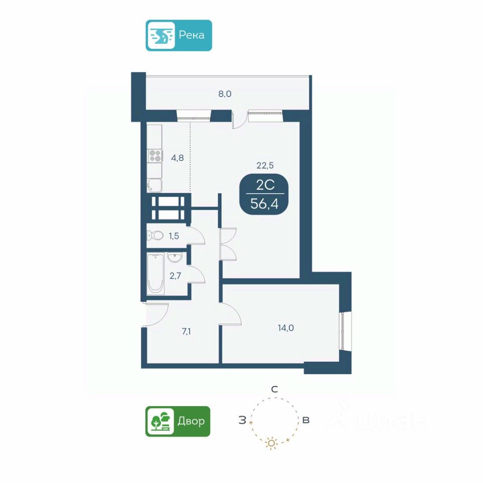 КВАРТИРА - Высота потолков 2,5 м. - Есть варианты квартир с ремонтом и в предчистовой отделке - горизонтальная разводка отопления - Большие лоджии 7 м. - Вид из окон на детские площадки или на набережную