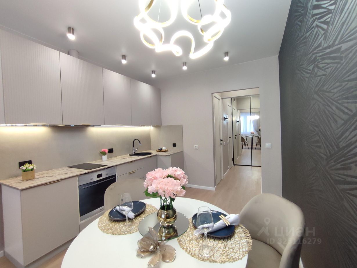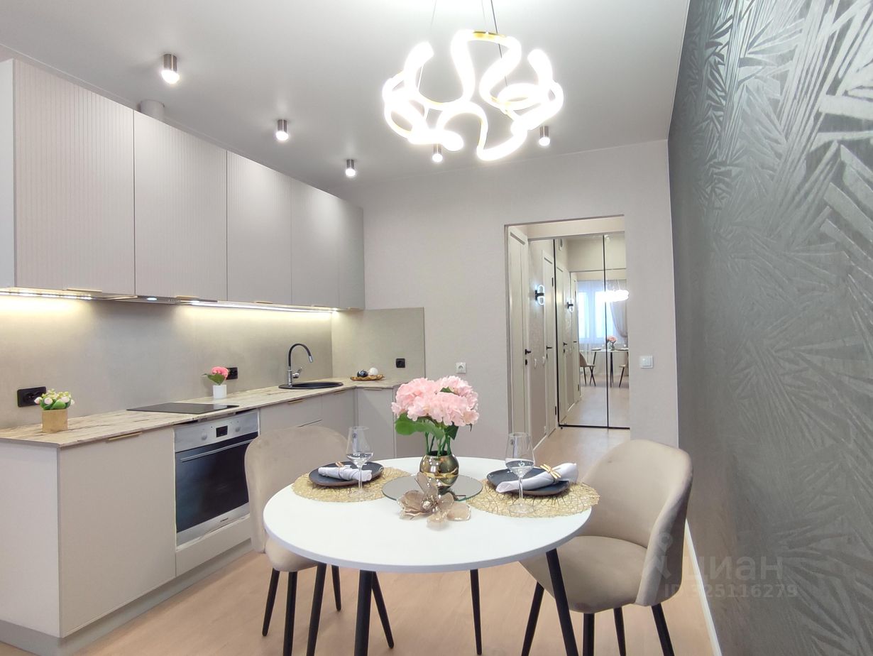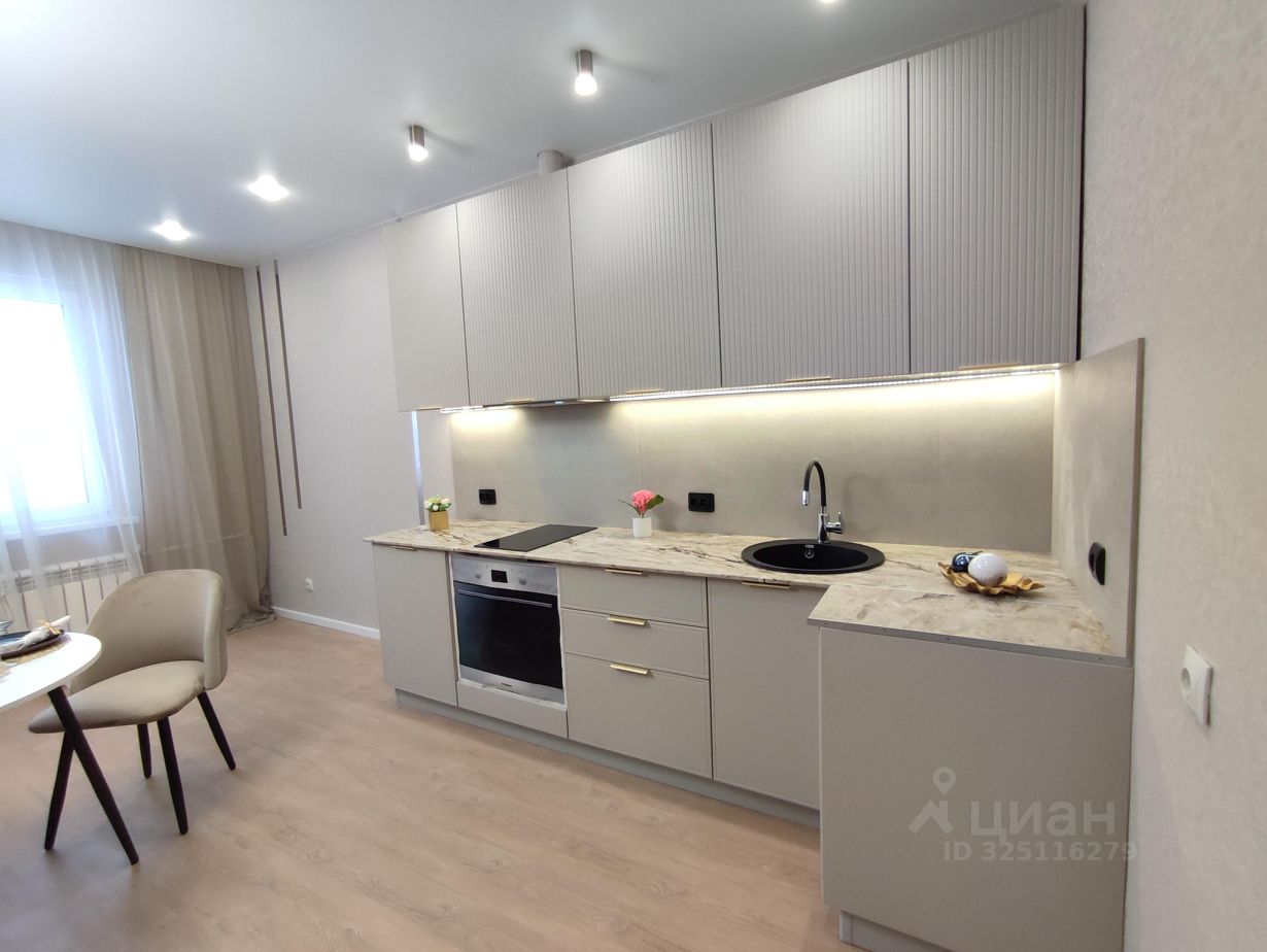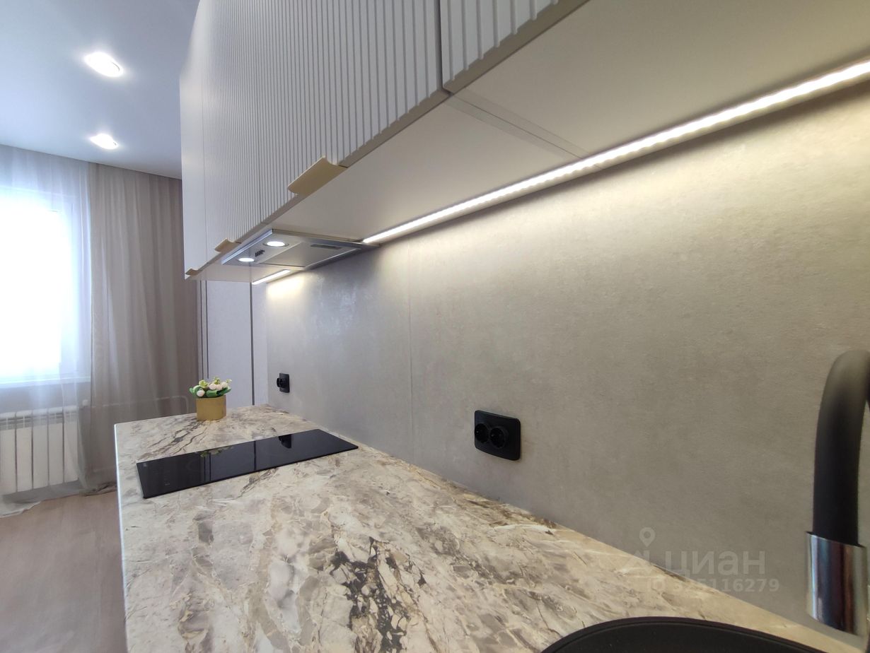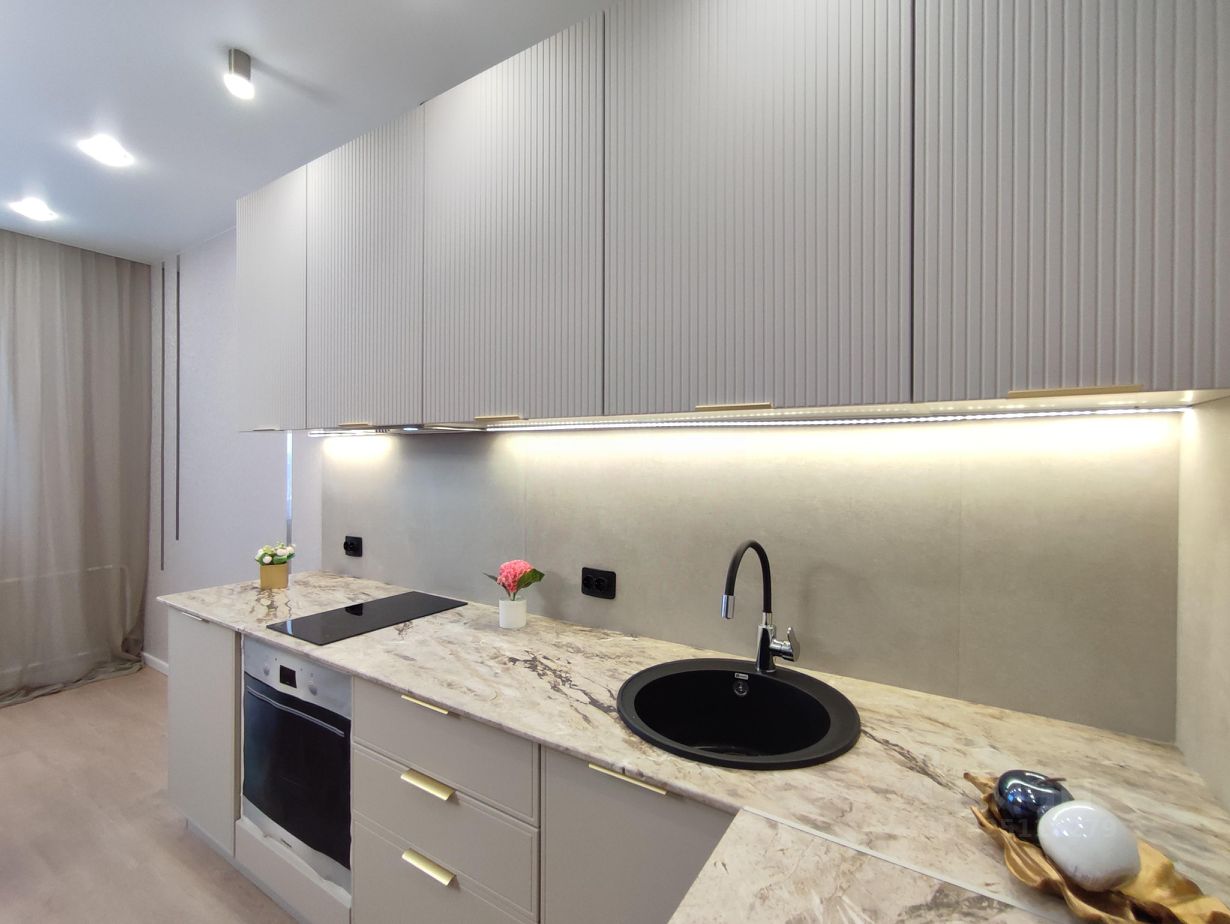 В кухне: - Планировка кухня-гостиная. Выделено место для дивана и ТВ зоны. -Качественный вместительный кухонный гарнитур, фасады МДФ с противогрязевым покрытием последнего поколения. - Каменная мойка и качественная сантехника. - Фартук из широкоформатного керамогранита 120*60. -Фурнитура -петли с доводчиками. - Бесконтактная подсветка кухни. - Встроенная новая бытовая техника: современная полновстраеваемая вытяжка и варочная поверхность. - Модный круглый стол + стулья велюр.