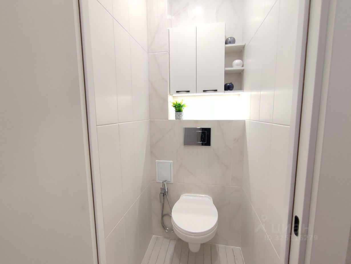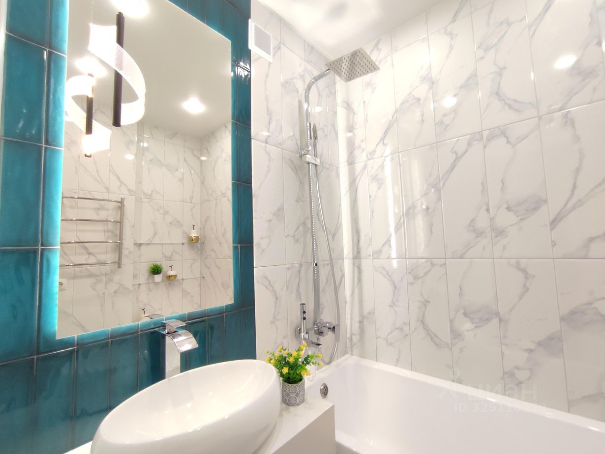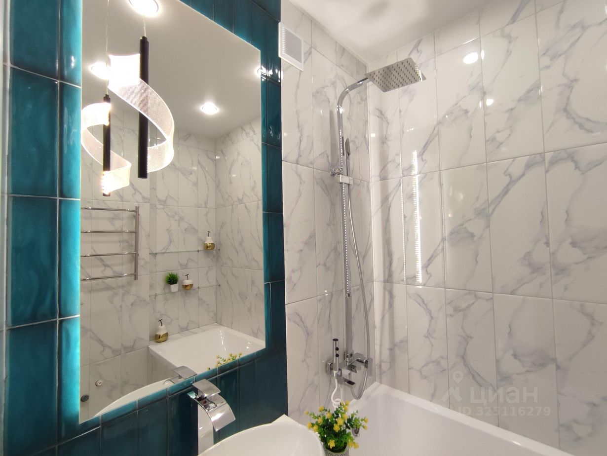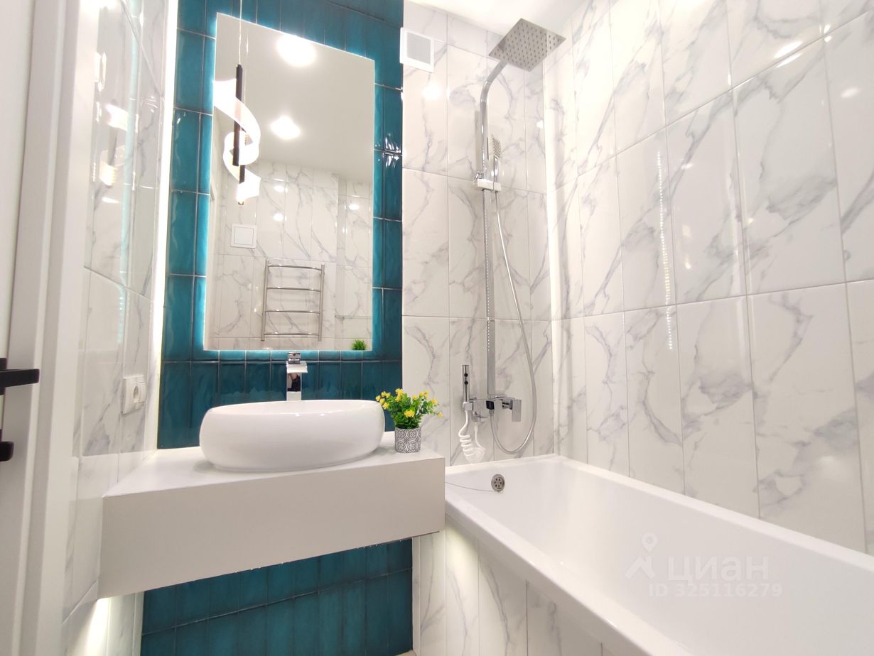 -Современная сантехника: инсталляция, безободковый унитаз, раковина-чаша, высокий смеситель-водопад, современная душевая стойка, гигиенический душ. Электрический полотенцесушитель скрытого монтажа. -Запилы всех углов под 45 градусов. - В качестве акцента в ванной - большое зеркало с подсветкой и декоративным светильником. Квартира яркая, стильная, заряженная на позитив и комфортную жизнь! Окна выходят на юго-запад.