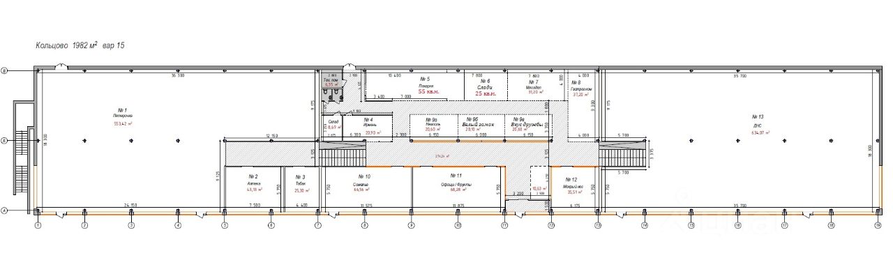 Одна из самых удачных локаций в центральной части Кольцово! Напротив расположены новые, престижные многоэтажные дома, сады, школы, магазины, парковая зона и остановка общественного транспорта Рассветная. Концепция первого здания - сетевой супермаркет ''Пятерочка'', фермерский рынок, непродовольственные товары, услуги населению.