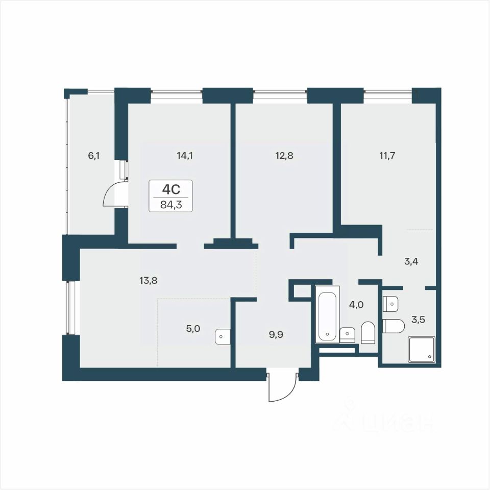 ''В продаже 4-комнатная квартира, площадью 84.3, под номером 87 в новом Доме ЖК ''Расцветай на Учительской''.'' Дом комфорт-класса в 5 минутах пешего пути от большого зеленого парка ''Сосновый бор''. В новом комплексе своя коммерческая инфраструктура, подземный паркинг, благоустроенный двор с детскими площадками для разных возрастов и зонами отдыха.