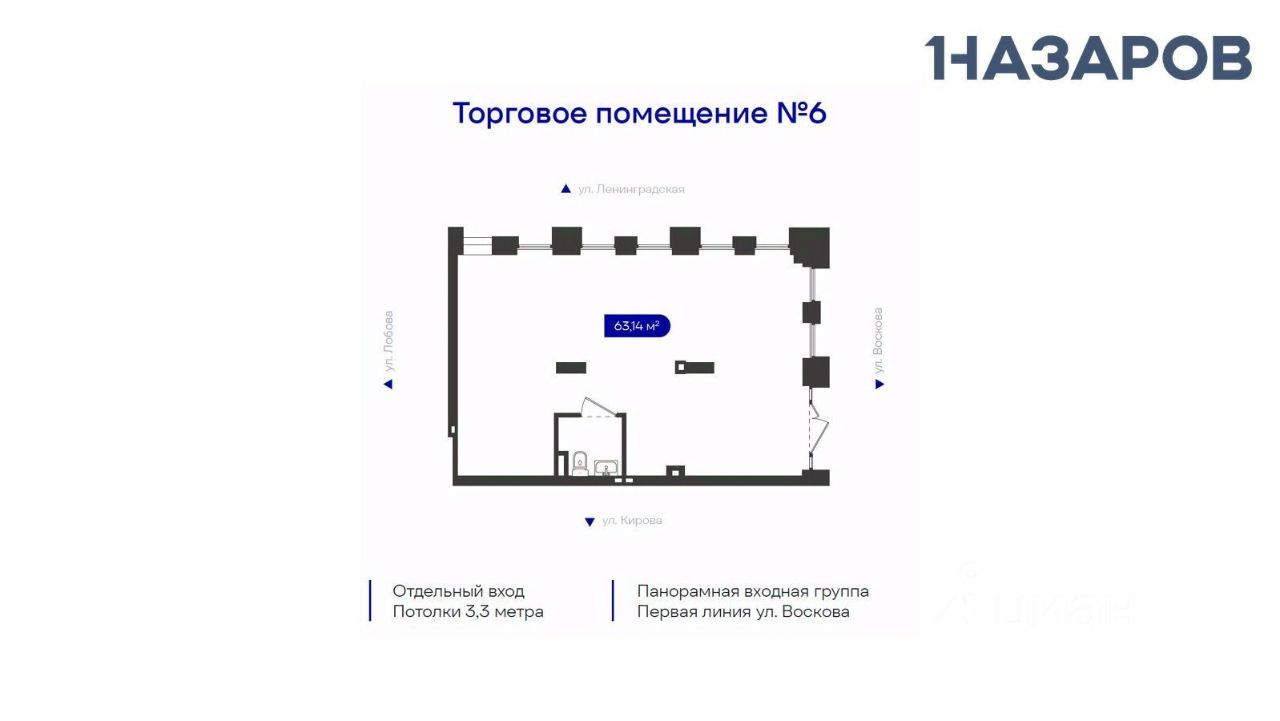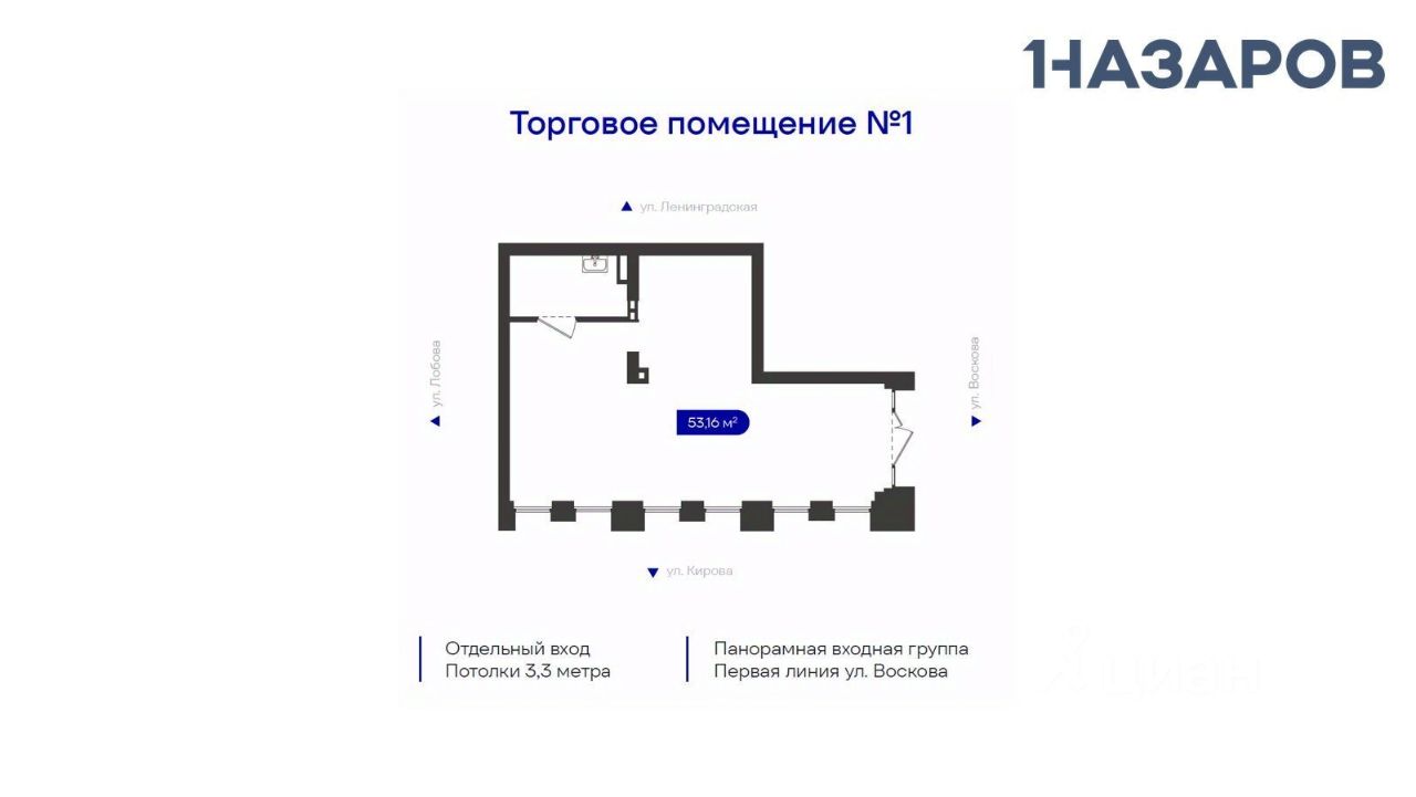 Панорамное витражное остекление. Первая линия. Отличная просматриваемость с дороги по ходу движения транспорта. Фасад на ул. Воскова - одностороннее движение, высокий транспортный поток с ул. Кирова, - это объездная дорога. Возможность наружной рекламы. В каждом помещении предусмотрена индивидуальная система вентиляции, не связанная с общедомовой сетью, с выводом воздуховодов на кровлю здания. Объект оснащен всеми необходимыми инженерными системами. 10-15 кВт на помещение. Отличное ландшафтное благоустройство территории.