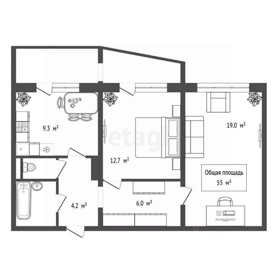 Квартира продаётся с мебелью и бытовой техникой.