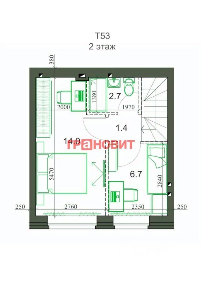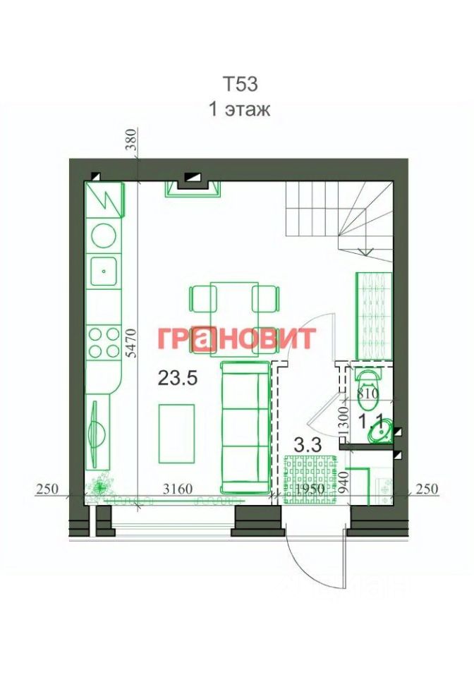 Общая площадь53,5 м2
