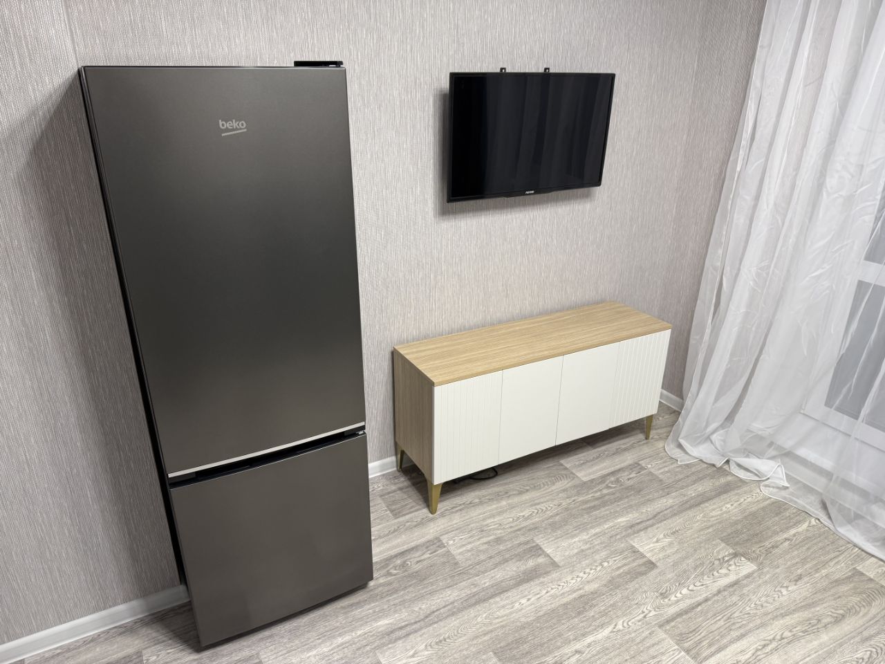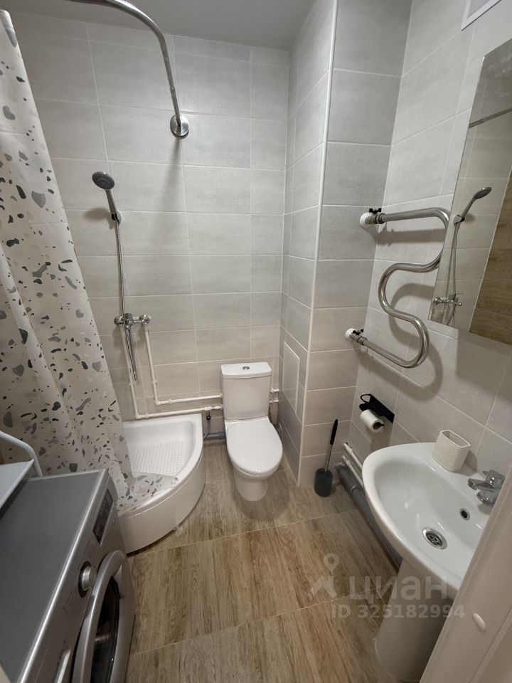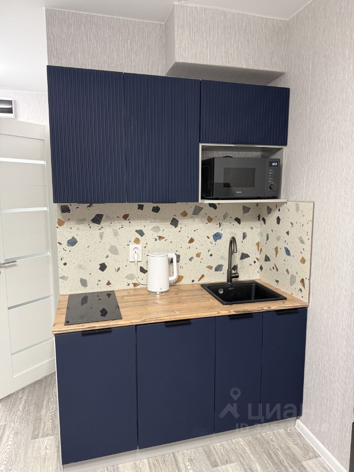 Сдается стильная студия с дизайнерским ремонтом в новом панельном доме 2025 года постройки. Просторная жилая зона площадью 20 м² включает уютный диван, шкаф и телевизор. Кухня оборудована современной техникой: холодильник, микроволновая печь и варочная панель, посудомоечная машина. В ванной комнате совмещенный санузел с душевой кабиной и стиральной машиной.